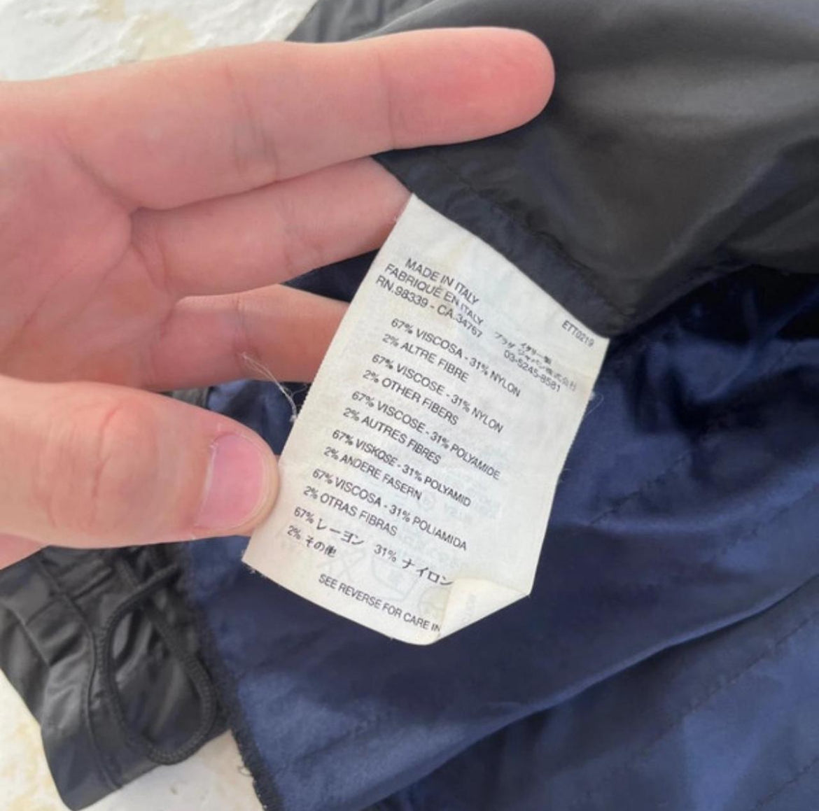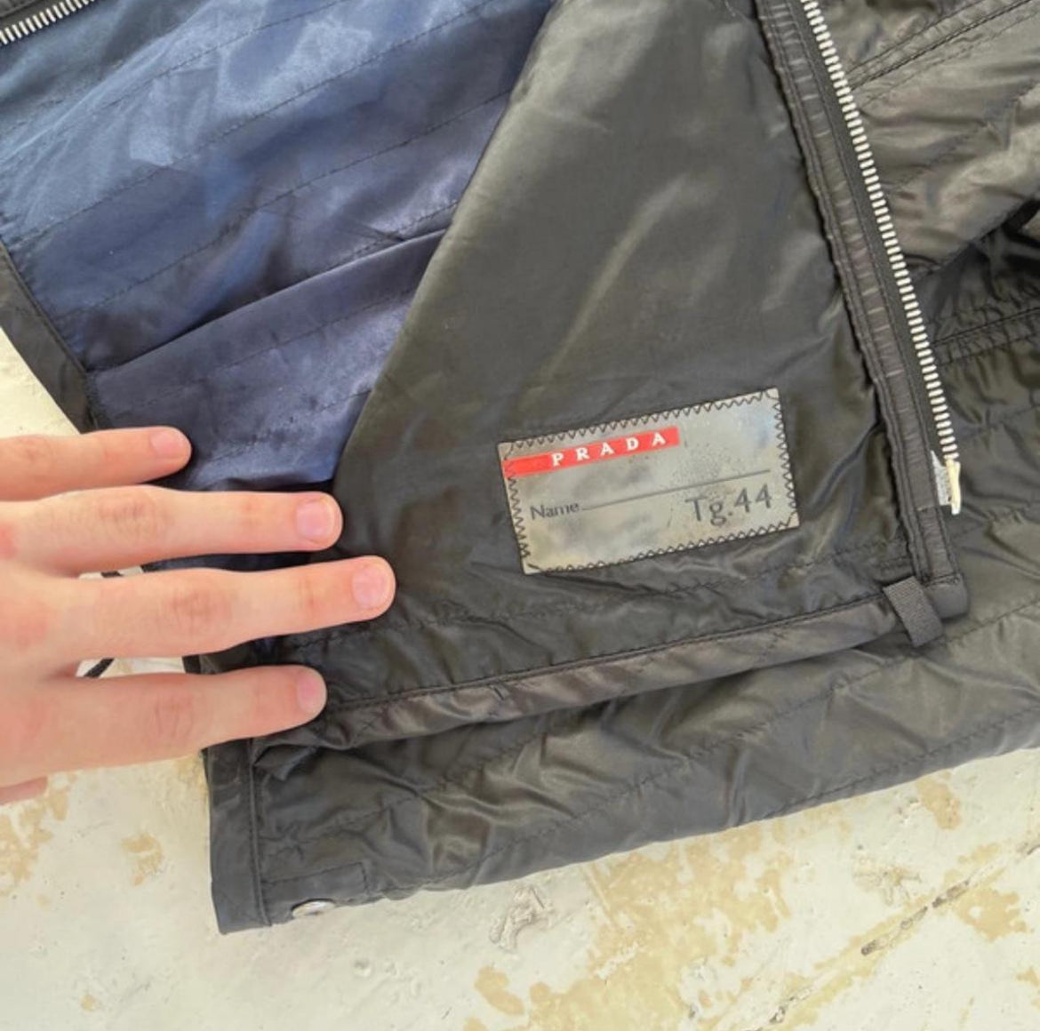 Incredible jacket from SS2000 Prada, a shimmer look with corset details down the side, royal blue inner lining, double zip and zipped pockets with ruffled material throughout.