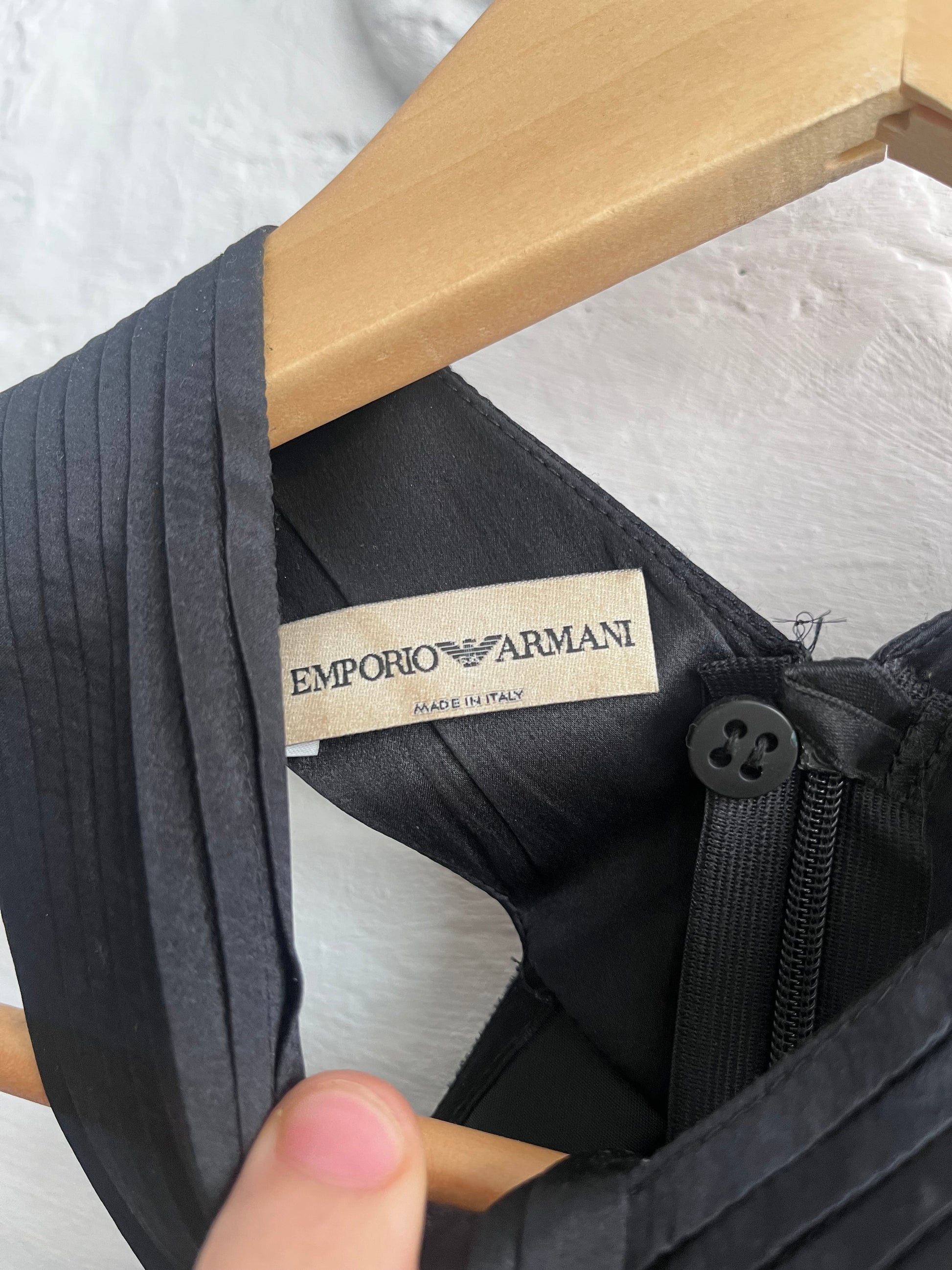 As shown this is a stunning piece from Armani’s 2003 FW runway, made of a light velvet material with a shimmer look to it, it features a ribbed halter neck and dangling mirror-like decor on the front. An incredible piece by any means.